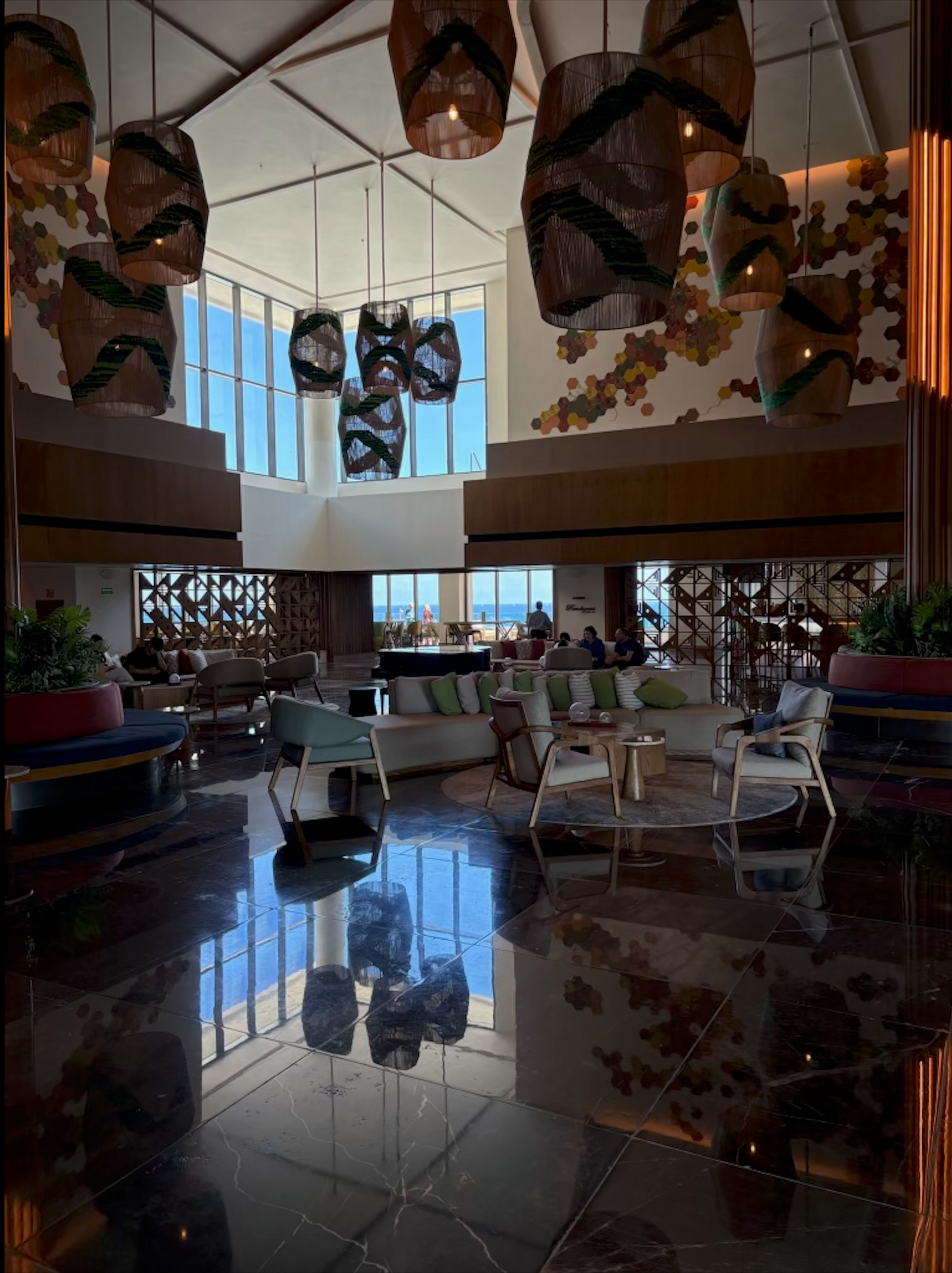 From the moment she arrived, the resort set the tone for a relaxed luxury experience. Guests are welcomed with refreshing cool towels and a signature drink before entering a stunning lobby filled with comfortable seating areas and quiet nooks—perfect for relaxing, people-watching, or gathering with friends.